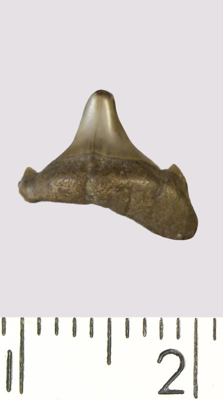 Зуб. Акула. Odontaspis venusta (Leriche, 1929). Классификация: Хордовые Chordata, Позвоночные Vertebrata, Хрящевые рыбы Chondrichthyes, Пластиножаберные Elasmobranchii