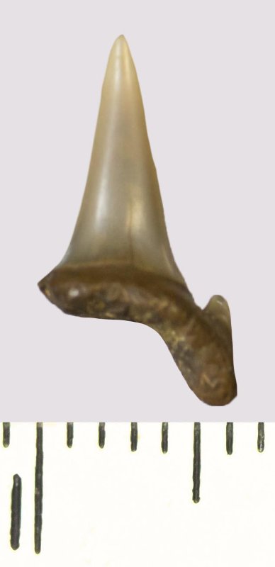 Зуб. Акула. Odontaspis venusta (Leriche, 1929). Классификация: Хордовые Chordata, Позвоночные Vertebrata, Хрящевые рыбы Chondrichthyes, Пластиножаберные Elasmobranchii