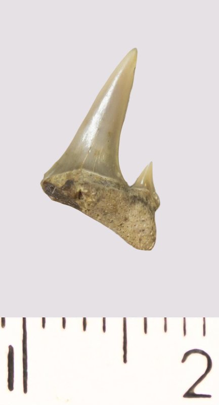 Зуб. Акула. Odontaspis venusta (Leriche, 1929). Классификация: Хордовые Chordata, Позвоночные Vertebrata, Хрящевые рыбы Chondrichthyes, Пластиножаберные Elasmobranchii