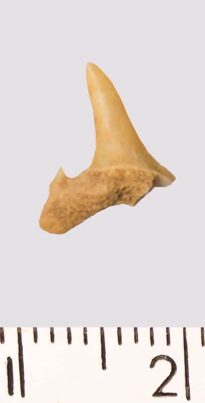 Зуб. Акула. Odontaspis striatula Dalinkevicius, 1935. Классификация: Хордовые Chordata, Позвоночные Vertebrata, Хрящевые рыбы Chondrichthyes, Пластиножаберные Elasmobranchii