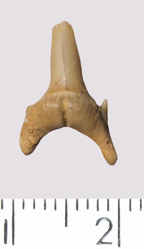Зуб. Акула. Odontaspis striatula Dalinkevicius, 1935. Классификация: Хордовые Chordata, Позвоночные Vertebrata, Хрящевые рыбы Chondrichthyes, Пластиножаберные Elasmobranchii