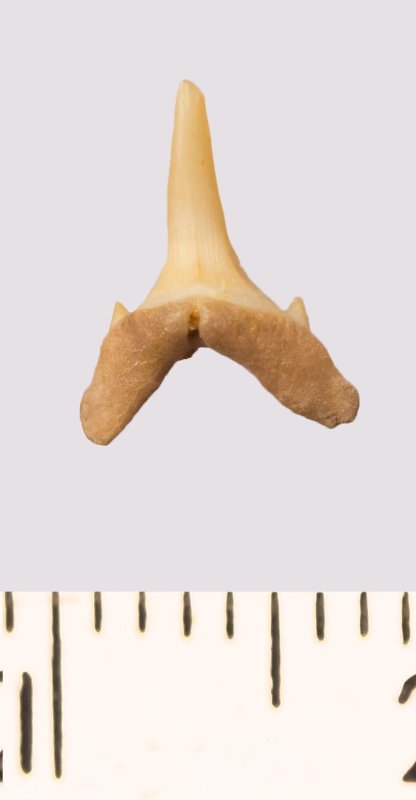Зуб. Акула. Scapanorhynchus rhaphiodon Agassiz, 1843. Классификация: Хордовые Chordata, Позвоночные Vertebrata, Хрящевые рыбы Chondrichthyes, Пластиножаберные Elasmobranchii