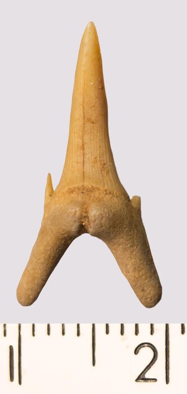 Зуб. Акула. Rhaphiodus sp. Классификация: Хордовые Chordata, Позвоночные Vertebrata, Хрящевые рыбы Chondrichthyes, Пластиножаберные Elasmobranchii