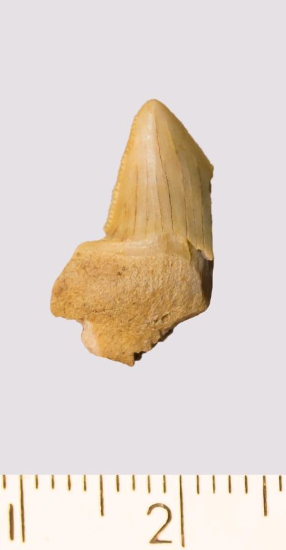 Зуб (фрагмент). Акула. Anacorax kaupi (Agassiz, 1843). Классификация: Хордовые Chordata, Позвоночные Vertebrata, Хрящевые рыбы Chondrichthyes, Пластиножаберные Elasmobranchii