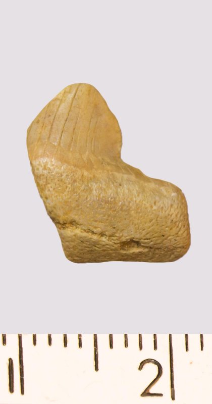 Зуб (фрагмент). Акула. Anacorax kaupi (Agassiz, 1843). Классификация: Хордовые Chordata, Позвоночные Vertebrata, Хрящевые рыбы Chondrichthyes, Пластиножаберные Elasmobranchii