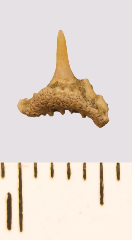 Зуб. Акула. Synechodus sp. Классификация: Хордовые Chordata, Позвоночные Vertebrata, Хрящевые рыбы Chondrichthyes, Пластиножаберные Elasmobranchii