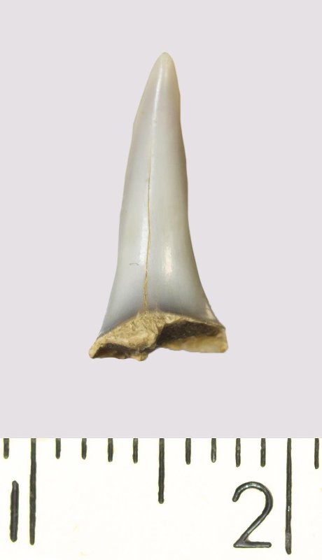 Зуб (фрагмент). Акула. Odontaspis venusta (Leriche, 1929). Классификация: Хордовые Chordata, Позвоночные Vertebrata, Хрящевые рыбы Chondrichthyes, Пластиножаберные Elasmobranchii