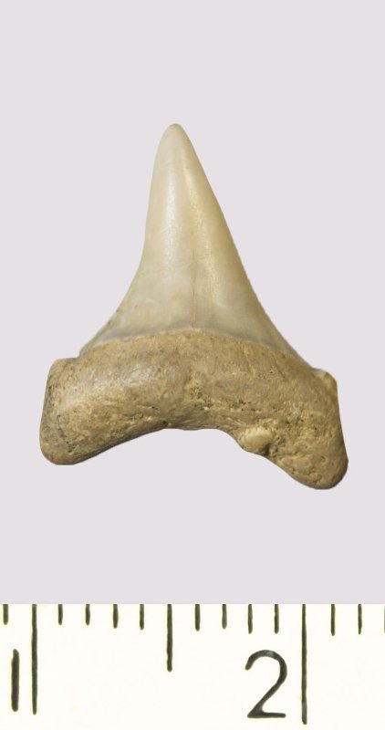 Зуб. Акула. Odontaspis macrorhiza (Cope) Leriche, 1902. Классификация: Хордовые Chordata, Позвоночные Vertebrata, Хрящевые рыбы Chondrichthyes, Пластиножаберные Elasmobranchii