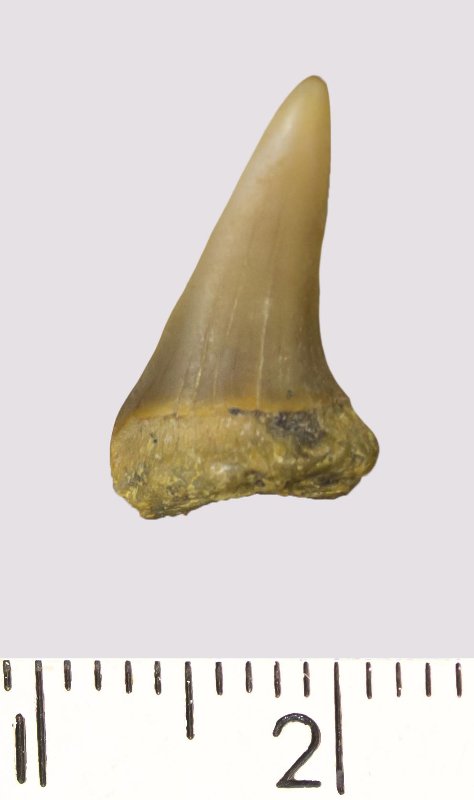 Зуб (фрагмент). Акула. Lamniformes gen. et sp. indet. Классификация: Хордовые Chordata, Позвоночные Vertebrata, Хрящевые рыбы Chondrichthyes, Пластиножаберные Elasmobranchii