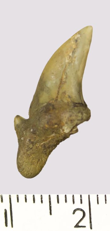 Зуб. Акула. Lamniformes gen. et sp. indet. Классификация: Хордовые Chordata, Позвоночные Vertebrata, Хрящевые рыбы Chondrichthyes, Пластиножаберные Elasmobranchii