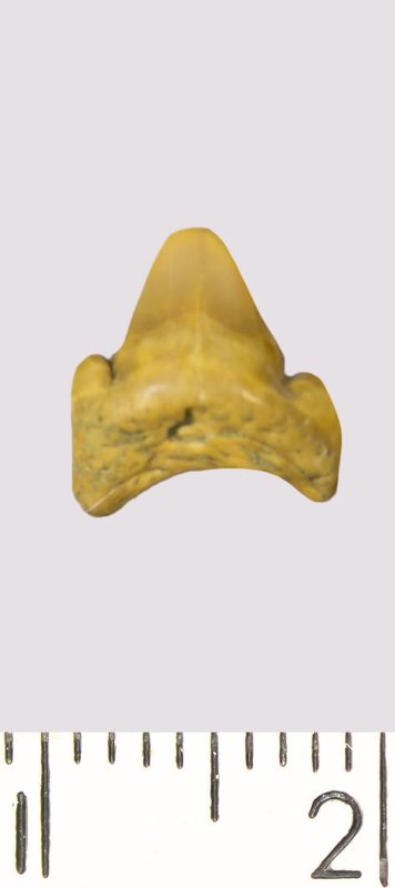 Зуб. Акула. Lamniformes gen. et sp. indet. Классификация: Хордовые Chordata, Позвоночные Vertebrata, Хрящевые рыбы Chondrichthyes, Пластиножаберные Elasmobranchii