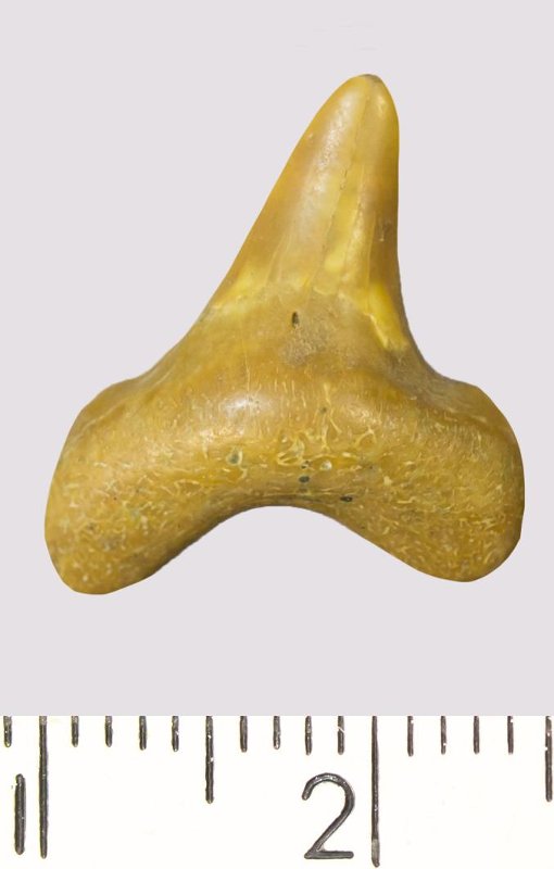 Зуб. Акула. Lamniformes gen. et sp. indet. Классификация: Хордовые Chordata, Позвоночные Vertebrata, Хрящевые рыбы Chondrichthyes, Пластиножаберные Elasmobranchii
