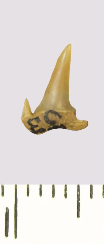Зуб. Акула. Odontaspis venusta (Leriche, 1929). Классификация: Хордовые Chordata, Позвоночные Vertebrata, Хрящевые рыбы Chondrichthyes, Пластиножаберные Elasmobranchii