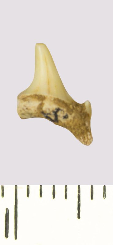 Зуб. Акула. Odontaspis venusta (Leriche, 1929). Классификация: Хордовые Chordata, Позвоночные Vertebrata, Хрящевые рыбы Chondrichthyes, Пластиножаберные Elasmobranchii