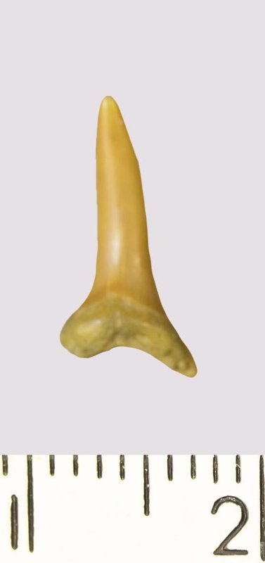 Зуб. Акула. Odontaspis venusta (Leriche, 1929). Классификация: Хордовые Chordata, Позвоночные Vertebrata, Хрящевые рыбы Chondrichthyes, Пластиножаберные Elasmobranchii