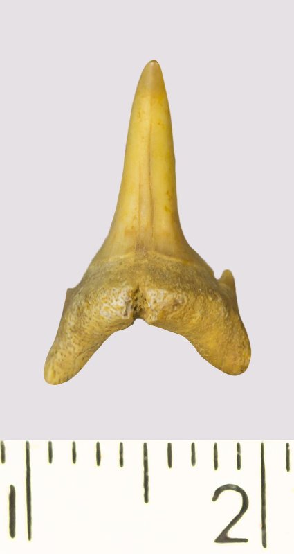 Зуб. Акула. Odontaspis venusta (Leriche, 1929). Классификация: Хордовые Chordata, Позвоночные Vertebrata, Хрящевые рыбы Chondrichthyes, Пластиножаберные Elasmobranchii