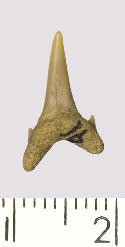 Зуб. Акула. Odontaspis venusta (Leriche, 1929). Классификация: Хордовые Chordata, Позвоночные Vertebrata, Хрящевые рыбы Chondrichthyes, Пластиножаберные Elasmobranchii