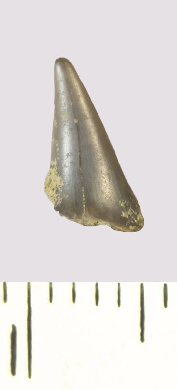 Зуб (фрагмент). Акула. Odontaspis sp. Классификация: Хордовые Chordata, Позвоночные Vertebrata, Хрящевые рыбы Chondrichthyes, Пластиножаберные Elasmobranchii