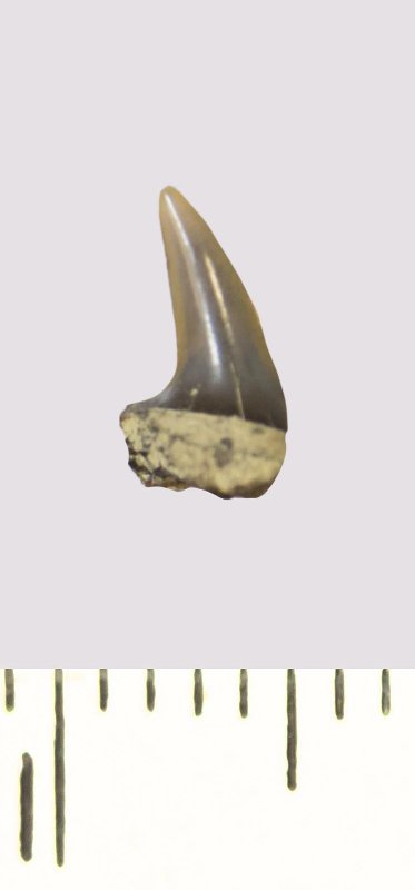 Зуб (фрагмент). Акула. Odontaspis sp. Классификация: Хордовые Chordata, Позвоночные Vertebrata, Хрящевые рыбы Chondrichthyes, Пластиножаберные Elasmobranchii