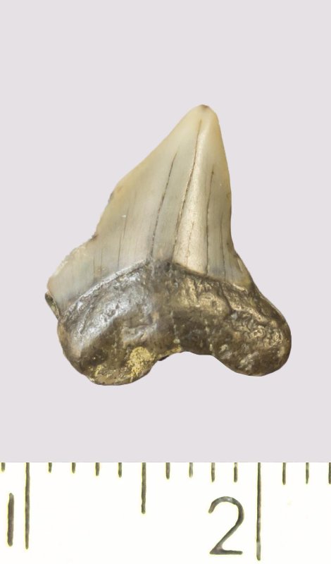 Зуб (фрагмент). Акула. Anacorax kaupi (Agassiz, 1843). Классификация: Хордовые Chordata, Позвоночные Vertebrata, Хрящевые рыбы Chondrichthyes, Пластиножаберные Elasmobranchii