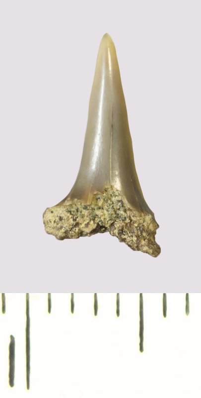 Зуб (фрагмент). Акула. Odontaspis sp. Классификация: Хордовые Chordata, Позвоночные Vertebrata, Хрящевые рыбы Chondrichthyes, Пластиножаберные Elasmobranchii