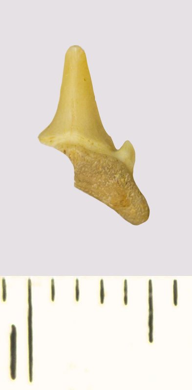 Зуб. Акула. Scapanorhynchus rhaphiodon Agassiz, 1843. Классификация: Хордовые Chordata, Позвоночные Vertebrata, Хрящевые рыбы Chondrichthyes, Пластиножаберные Elasmobranchii