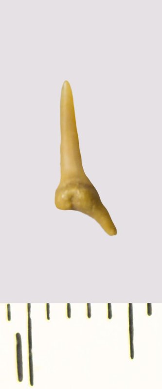 Зуб. Акула. Scapanorhynchus rhaphiodon Agassiz, 1843. Классификация: Хордовые Chordata, Позвоночные Vertebrata, Хрящевые рыбы Chondrichthyes, Пластиножаберные Elasmobranchii