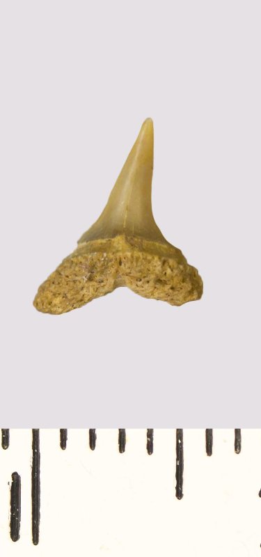 Зуб. Акула. Scapanorhynchus rhaphiodon Agassiz, 1843. Классификация: Хордовые Chordata, Позвоночные Vertebrata, Хрящевые рыбы Chondrichthyes, Пластиножаберные Elasmobranchii