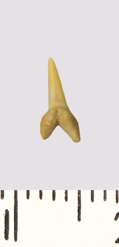 Зуб. Акула. Scapanorhynchus rhaphiodon Agassiz, 1843. Классификация: Хордовые Chordata, Позвоночные Vertebrata, Хрящевые рыбы Chondrichthyes, Пластиножаберные Elasmobranchii
