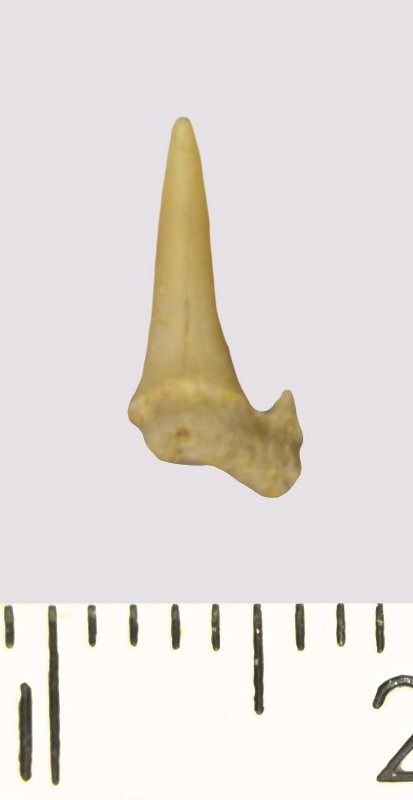 Зуб. Акула. Scapanorhynchus rhaphiodon Agassiz, 1843. Классификация: Хордовые Chordata, Позвоночные Vertebrata, Хрящевые рыбы Chondrichthyes, Пластиножаберные Elasmobranchii