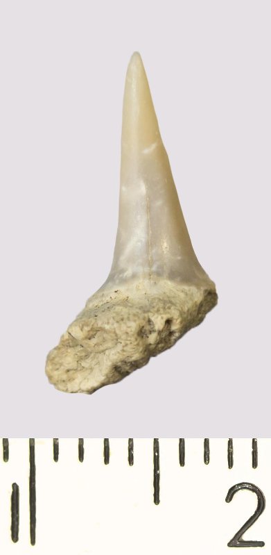 Зуб. Акула. Eostriatolamia venusta (Leriche, 1929). Классификация: Хордовые Chordata, Позвоночные Vertebrata, Хрящевые рыбы Chondrichthyes, Пластиножаберные Elasmobranchii