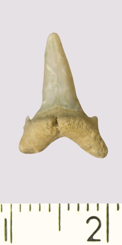 Зуб. Акула. Eostriatolamia venusta (Leriche, 1929). Классификация: Хордовые Chordata, Позвоночные Vertebrata, Хрящевые рыбы Chondrichthyes, Пластиножаберные Elasmobranchii