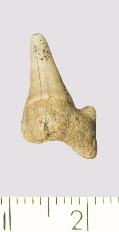 Зуб. Акула. Odontaspis macrorhiza (Cope) Leriche, 1902. Классификация: Хордовые Chordata, Позвоночные Vertebrata, Хрящевые рыбы Chondrichthyes, Пластиножаберные Elasmobranchii