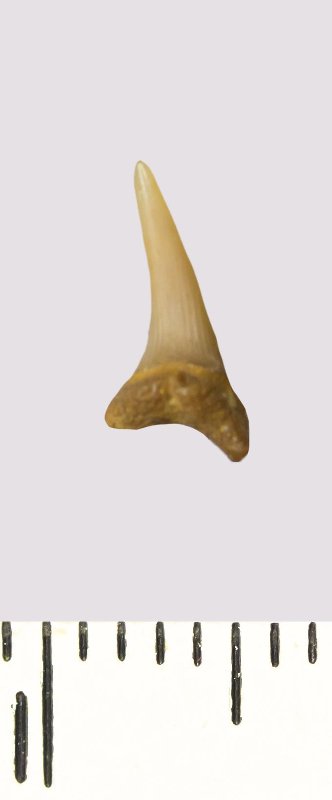 Зуб. Акула. Scapanorhynchus rhaphiodon Agassiz, 1843. Классификация: Хордовые Chordata, Позвоночные Vertebrata, Хрящевые рыбы Chondrichthyes, Пластиножаберные Elasmobranchii