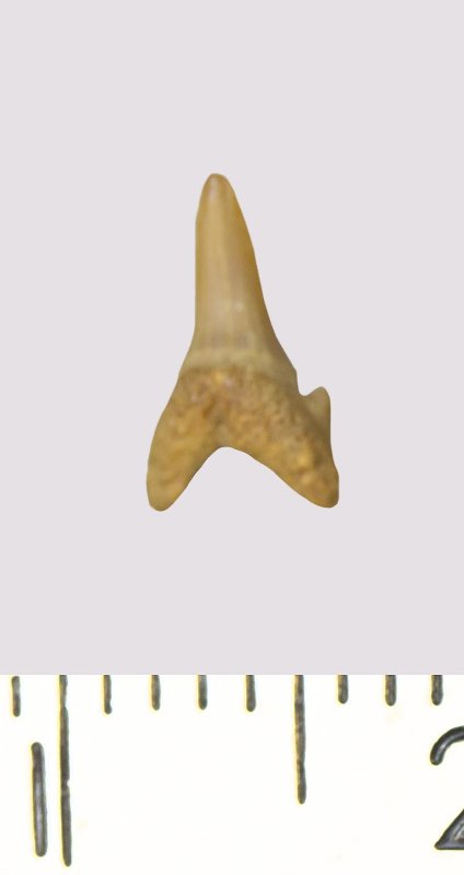 Зуб. Акула. Scapanorhynchus rhaphiodon Agassiz, 1843. Классификация: Хордовые Chordata, Позвоночные Vertebrata, Хрящевые рыбы Chondrichthyes, Пластиножаберные Elasmobranchii