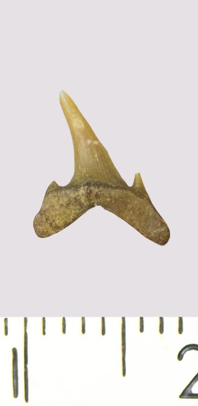 Зуб. Акула. Scapanorhynchus rhaphiodon Agassiz, 1843. Классификация: Хордовые Chordata, Позвоночные Vertebrata, Хрящевые рыбы Chondrichthyes, Пластиножаберные Elasmobranchii