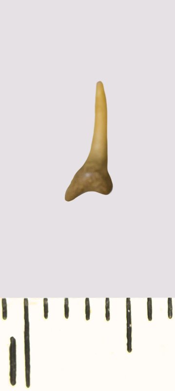 Зуб. Акула. Scapanorhynchus rhaphiodon Agassiz, 1843. Классификация: Хордовые Chordata, Позвоночные Vertebrata, Хрящевые рыбы Chondrichthyes, Пластиножаберные Elasmobranchii