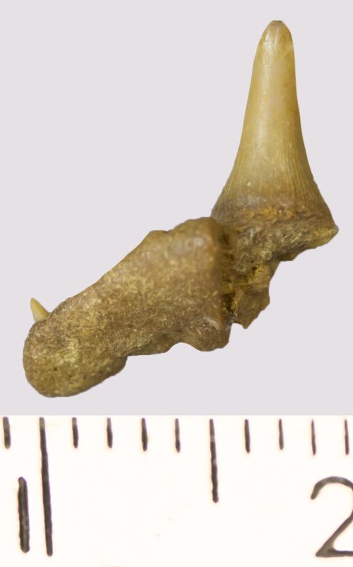 Зуб. Акула. Paraorthacodus sp. Классификация: Хордовые Chordata, Позвоночные Vertebrata, Хрящевые рыбы Chondrichthyes, Пластиножаберные Elasmobranchii