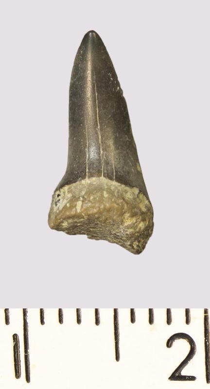 Зуб (фрагмент). Акула. Odontaspis macrorhiza (Cope) Leriche, 1902. Классификация: Хордовые Chordata, Позвоночные Vertebrata, Хрящевые рыбы Chondrichthyes, Пластиножаберные Elasmobranchii