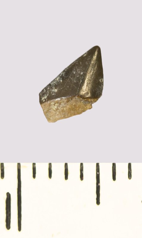 Зуб (фрагмент). Акула. Anacorax praeyanganensis. Классификация: Хордовые Chordata, Позвоночные Vertebrata, Хрящевые рыбы Chondrichthyes, Пластиножаберные Elasmobranchii