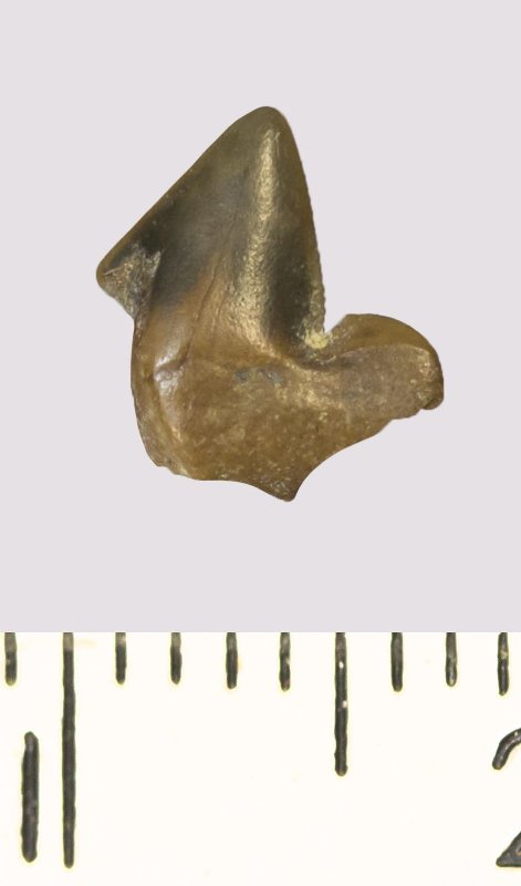 Зуб (фрагмент). Акула. Anacorax praeyanganensis. Классификация: Хордовые Chordata, Позвоночные Vertebrata, Хрящевые рыбы Chondrichthyes, Пластиножаберные Elasmobranchii