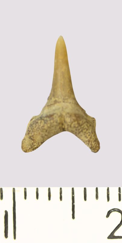 Зуб. Акула. Odontaspis striatula Dalinkevicius, 1935. Классификация: Хордовые Chordata, Позвоночные Vertebrata, Хрящевые рыбы Chondrichthyes, Пластиножаберные Elasmobranchii