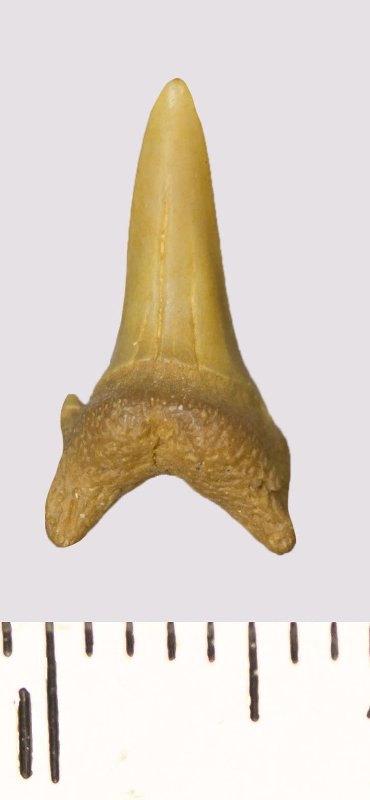 Зуб. Акула. Odontaspis striatula Dalinkevicius, 1935. Классификация: Хордовые Chordata, Позвоночные Vertebrata, Хрящевые рыбы Chondrichthyes, Пластиножаберные Elasmobranchii