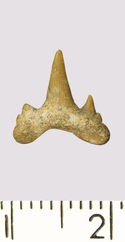 Зуб. Акула. Rhaphiodus sp. Классификация: Хордовые Chordata, Позвоночные Vertebrata, Хрящевые рыбы Chondrichthyes, Пластиножаберные Elasmobranchii
