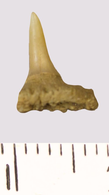 Зуб. Акула. Paraorthacodus sp. Классификация: Хордовые Chordata, Позвоночные Vertebrata, Хрящевые рыбы Chondrichthyes, Пластиножаберные Elasmobranchii