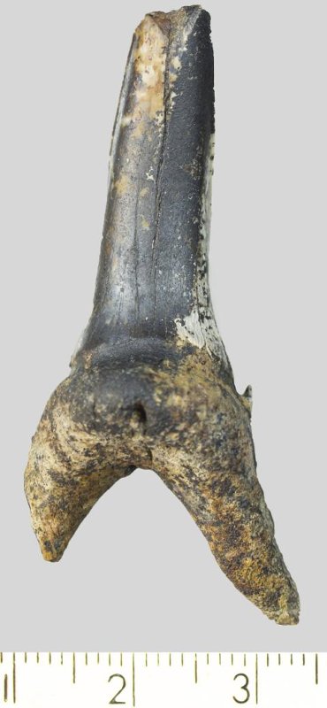 Зуб. Акула. Hispidaspis sp. Классификация: Хордовые Chordata, Позвоночные Vertebrata, Хрящевые рыбы Chondrichthyes, Пластиножаберные Elasmobranchii