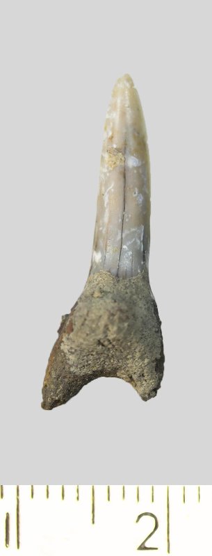 Зуб. Акула. Hispidaspis sp. Классификация: Хордовые Chordata, Позвоночные Vertebrata, Хрящевые рыбы Chondrichthyes, Пластиножаберные Elasmobranchii