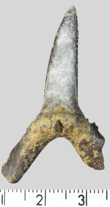 Зуб. Акула. Hispidaspis sp. Классификация: Хордовые Chordata, Позвоночные Vertebrata, Хрящевые рыбы Chondrichthyes, Пластиножаберные Elasmobranchii