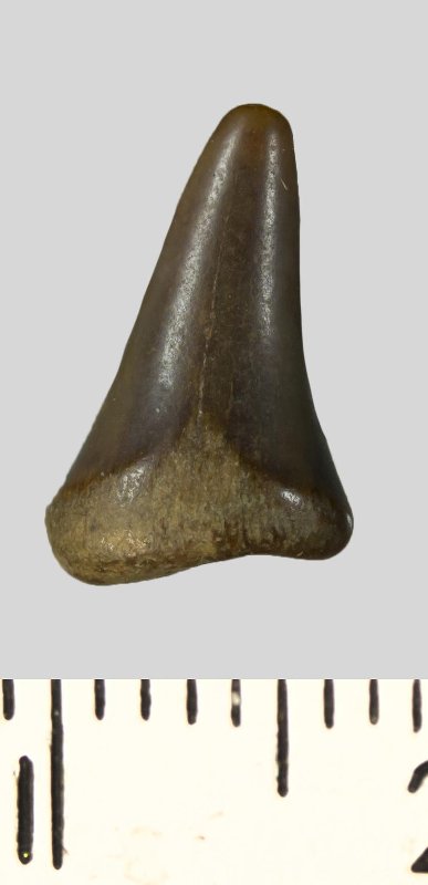 Зуб (фрагмент). Акула. Lamniformes gen. et sp. indet. Классификация: Хордовые Chordata, Позвоночные Vertebrata, Хрящевые рыбы Chondrichthyes, Пластиножаберные Elasmobranchii
