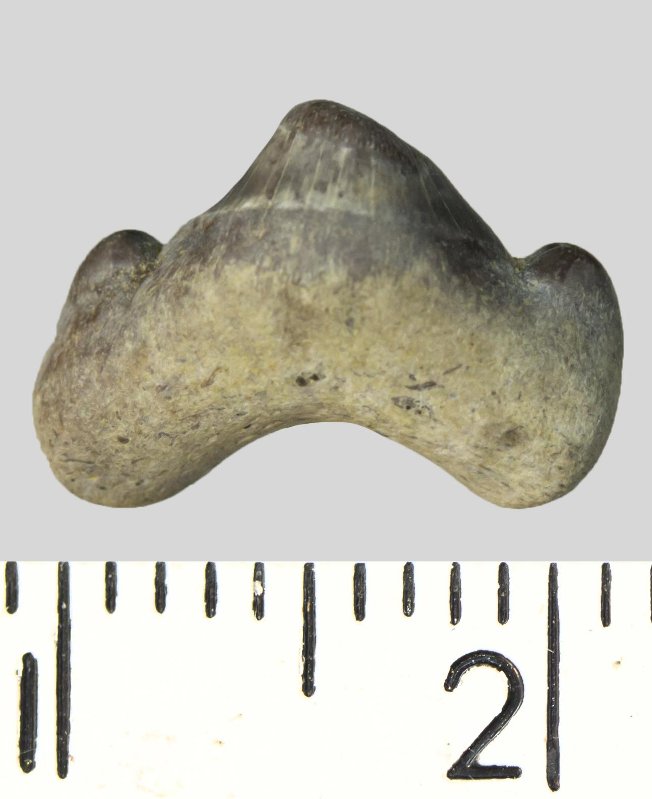 Зуб. Акула. Lamniformes gen. et sp. indet. Классификация: Хордовые Chordata, Позвоночные Vertebrata, Хрящевые рыбы Chondrichthyes, Пластиножаберные Elasmobranchii